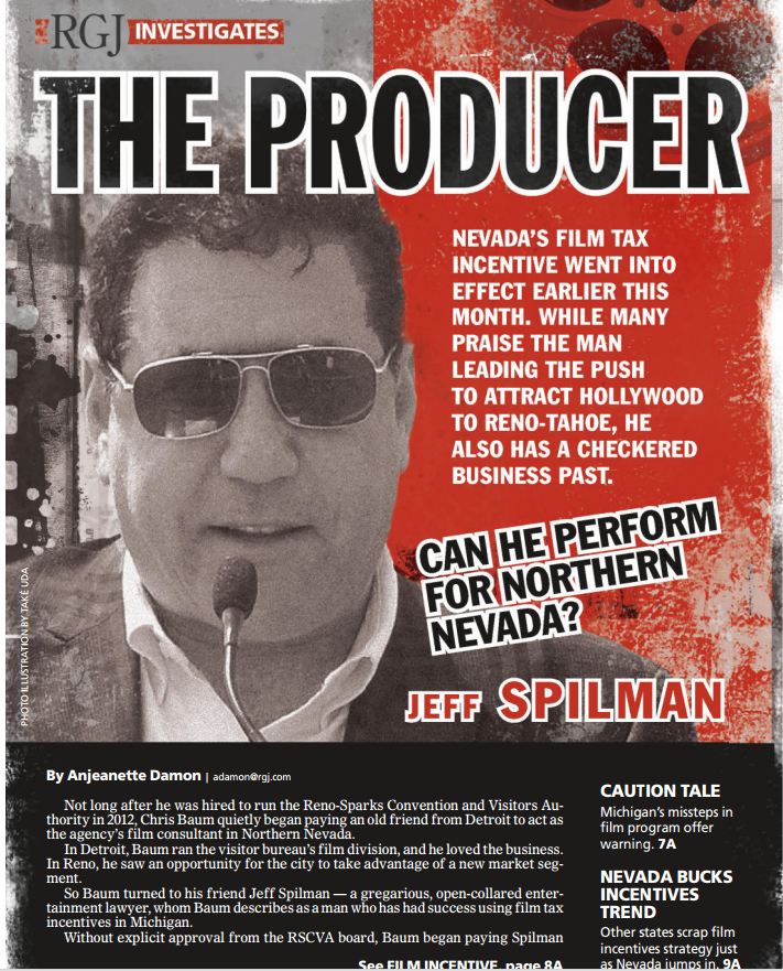 FILM TAX INCENTIVES: When he was hired to head Reno’s tourism agency, Chris Baum quietly began paying an old friend to act as the agency’s new film consultant. Turns out his old friend’s past was marked by a series of failures, leading to questions about whether the agency’s money was well spent. As part of the package, I also looked at the wisdom of launching a film tax incentive program at a time other states were axing similar tax breaks. Six months later, the agency had ended Jeff Spilman’s contract and continued to struggle to land any film deals.